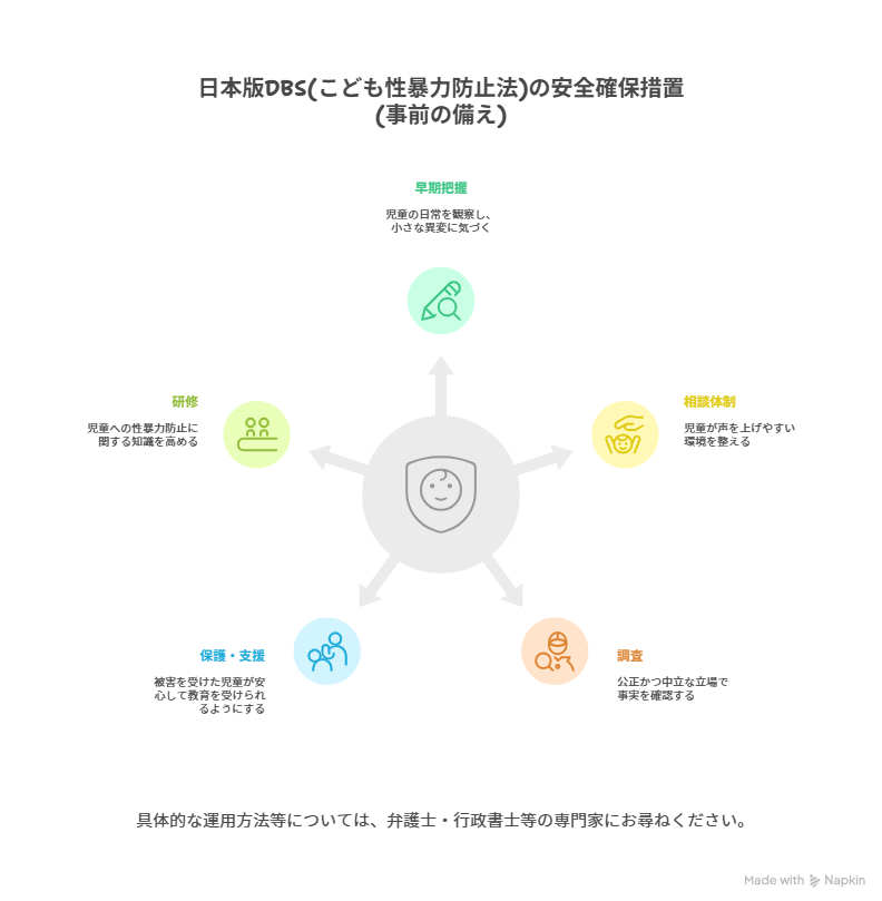 日本版DBS(こども性暴力防止法)は、教育・保育に関わる事業者に対し、犯罪事実確認に基づく安全確保措置の実施を義務付けています。今回解説する「防止措置」の運用にあたっては労働法制との整合性に十分な配慮が必要です。